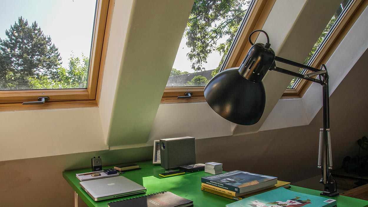"Ich habe die Kästen für die Zellulosefasern gebaut, was mit den Holzweichfaserplatten und der Folie schnell ging. Für das Anbringen der Folie braucht man allerdings zwei Personen. Die eine hält die Folie, die andere tackert sie an die Sparren. Dann habe ich mit einem Freund drei Dachfenster eingebaut. Das war der handwerklich schwierigste Teil des gesamten Ausbaus, doch mit der Hilfe und nach genauem Studium der Anleitung haben wir das gut hinbekommen und es ist zum Glück alles dicht."